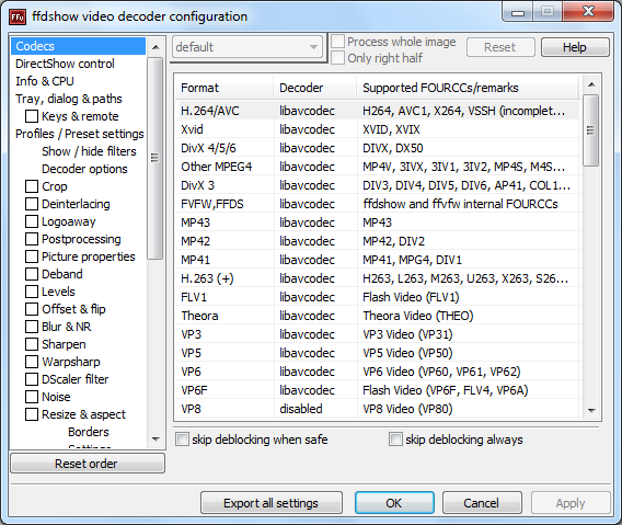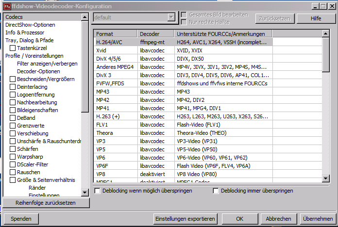 Ja. Ich hab nun überall ffdshow eingtragen