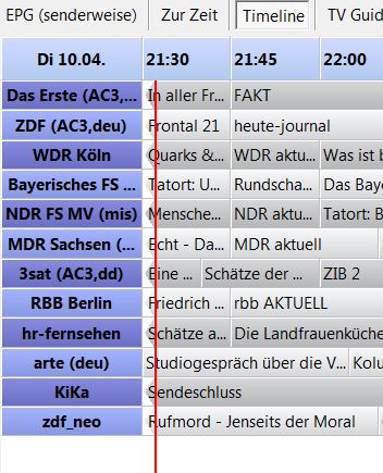 jzimmer Posted April 10, 2012 Author Posted April 10, 2012 Hey. Ich muß präzisieren: Die HD-Sender erscheinen im EPG zwar in der Liste (EPG (senderweise) und in TV Guide), nicht aber in der Timeline !!! Gilt bei aber nur für den DVBViewer pro. Im Recording Service erscheinen die HD-Kanäle überhaupt nicht mehr. Ich habe einen Ausschnitt der Senderleiste und der Timeline zur Verdeutlichung angehängt. mfg J. Zimmer Quote