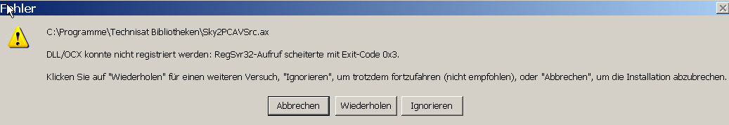 Griga Posted April 11, 2012 Posted April 11, 2012 Ohne installierte TechniSat-Software bzw. ausgeführtes Setup läuft nichts. Hast du es mit Administrator-Rechten gestartet? Mit einer solchen Fehlermeldung bei der Installation hatte ich früher auch mal zu kämpfen. Vor allem löschte das Setup sämtliche installierte Dateien wieder, wenn ich die Meldung wegklickte. Geholfen hat folgender Trick: Wenn die Fehlermeldung erscheint, den vom Setup angelegten Ordner Programme\TechniSat DVB an einen anderen Ort kopieren (z.B. Desktop). Dann die Meldung wegklicken, Setup beenden, falls es das nicht von alleine tut, und den Ordner wieder an seinen ursprünglichen Ort verschieben. Abschließend mit dem Radlight Filter Manager die Datei Programme\TechniSat DVB\bin\Sky2PCAVSrc.ax im System registrieren (Register-Button). Erfordert Admin-Rechte. Danach sollte der DVBViewer funktionieren. Quote