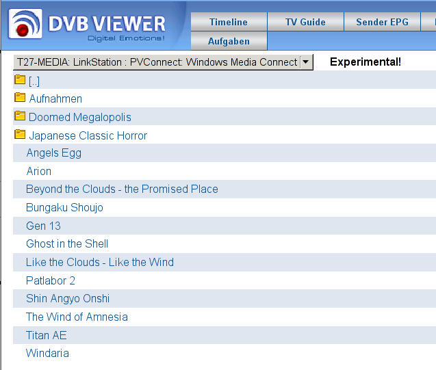 trudeh Posted May 4, 2012 Author Posted May 4, 2012 (edited) Ich konnte doch vorher schon über uPnP Filme vom Recording Service streamen, wenn ich sie über "Verzeichnisse" auf dem uPnP-Client ausgewählt hatte? Du konntest aber bisher über das WebIF, ausser Aufnahmen des RS, keine Medieninhalte wiedergeben (nicht per uPNP). Jetzt kannst du auch im Büro eine MKV die zu Hause liegt anschauen. Der RS erkennt jetzt auch andere uPnP Server wie z.B. meine Fritzbox und bietet auch ihre Inhalte zum Stream an. Edited May 4, 2012 by trudeh
