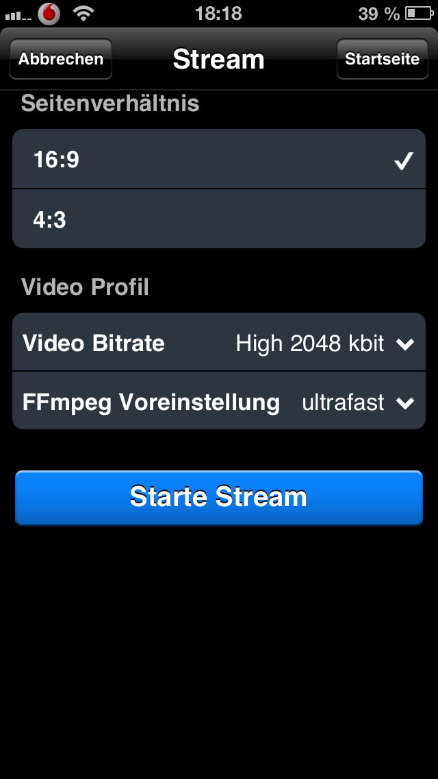Streaming über die beim Recordingservice "mitgelieferte" iPhone-Darstellung klappt....aber ich würde gerne auch diese App ausprobieren.