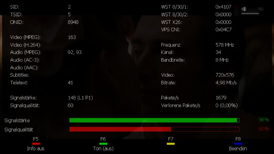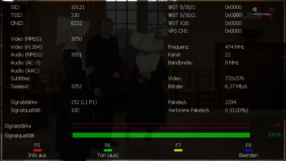 CiNcH Posted January 1, 2013 Author Posted January 1, 2013 Ich habe jetzt bei Elgato den aktuellen DiBcom Treiber (3.15) geladen und die inf entsprechend für meinen TerraTec T5 Stick adaptiert. Außerdem gibt es da auch das aktuelle TerraTec Home Cinema. Die Werte in den Signal Statistiken sehen nun etwas anders aus... ORS Mux B (474 MHz): Signalstärke: 52 (L1 P1) (34%) Signalqualität: 100% SRG Mux (578 MHz): Signalstärke: 48 (L1 P1) (32%) Signalqualität: 97% Die Werte für Signalstärke und Signalqualität haben sich mit dem neuen Treiber grundlegend geändert. Der Wert bei der Signalstärke entspricht wohl der Feldstärke in dBuV. Quote
