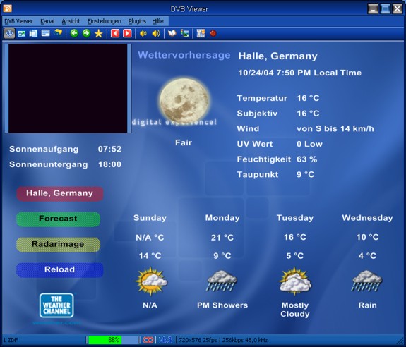 Guest Lars_MQ Posted October 24, 2004 Posted October 24, 2004 osdWetter Plugin 0.95 --------------------- Weather data provided by weather.com ACHTUNG das osdWeather Plugin benötigt das newOSD 0.95 und den DVBViewer 2.3beta. Es benötigt auch eine Internetverbindung zum Einrichten des Standorts und um die Wetterdaten abzurufen. Es sind zwei zip Archive im membersbereich: osdWeatherImg.zip und osdweather.zip. beide einfach in das DVBViewerverzeichniss entpacken (mit den darin enthaltenen Pfaden). Installationsanleitung in der liesmich.txt have Fun lars [Edit] Rückmeldung sind ausdrücklich erwünscht [/edit] Quote
