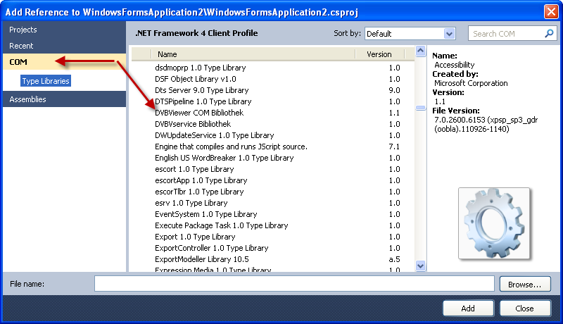 VinoRosso Posted February 8, 2013 Posted February 8, 2013 Hi, ich versuche gerade mit c# und visual studio auf die COM schnittstelle zuzugreifen. Hab Visual Studio 2012 Express runtergeladen und ein neues Projekt erstellt, jetzt wollte ich als Verweis die DVBViewer COM Schnittstelle hinzufügen, sie wird aber nicht gelistet...... Was mach ich falsch, oder wie kann es sein das die COM Schnittstelle nicht gelistet wird? DVBViewer ist jedenfalls installiert ;-) Bin für jede Hilfe dankbar, sonst stirbt das Projekt bevor es begonnen hat Quote