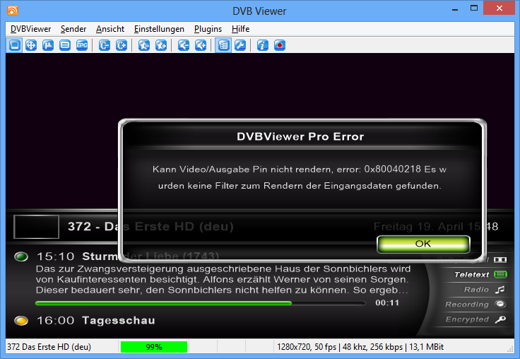 higgns Posted April 19, 2013 Posted April 19, 2013 (edited) Hallo, Seit der Installation von Windows 8 kann ich nur noch HD Sender anzeigen. Die Fehlermeldung lässt auf das Fehlen von Filtern/Decodern schließen. Jedoch sind ffdshow und LAV auch nach deren ordnungsgemäßen Installation nicht auswählbar. Wär nett wenn jemand einen Rat für mich hat. Gruß, Higgns Edited April 19, 2013 by higgns Quote