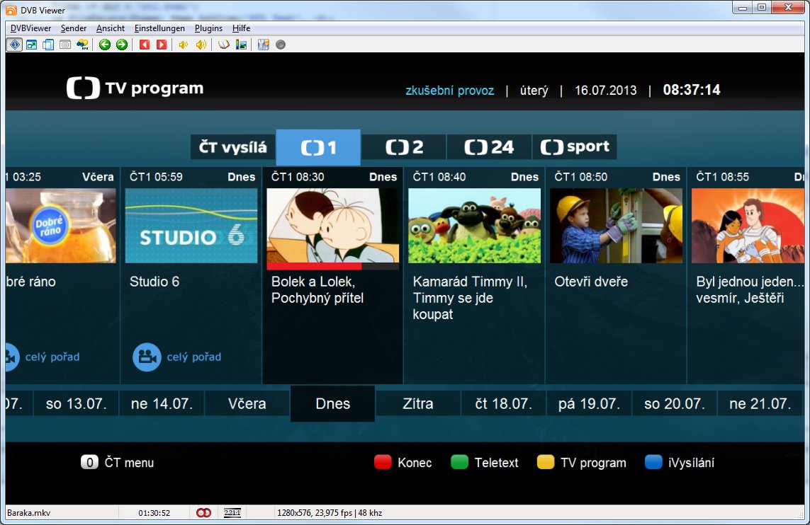 marduk Posted July 15, 2013 Posted July 15, 2013 Is there any possibility to trial version of this plugin ? I would like to test whether they will work Czech Television. They just released complete archiv. Hello, HbbTV plugin works on Czech TV (at least on CT1 over Astra 23,5, DVB-T not tested yet). iVysilani (TV archiv) works, but start of stream is slow (may be slow Czech TV servers). @hackbart: address is http://hbbtv.ceskatelevize.cz/start/ (not working in web browser, but working in DVBViewer) Quote