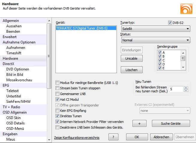 user_dvb Posted September 25, 2013 Posted September 25, 2013 (edited) Hallo, bis jetzt hat DVBViewer Pro/GE funktioniert auf einmal geht nichts mehr folgendes hab ich schon versucht: Deinstallation/Neuinstallation DVBViewer Pro/GE Installation DVBViewer TERRATEC Edition (das Programm funktioniert) support.zip Ich verwende Terratec S7 Danke für Hilfe Edited September 25, 2013 by user_dvb Quote