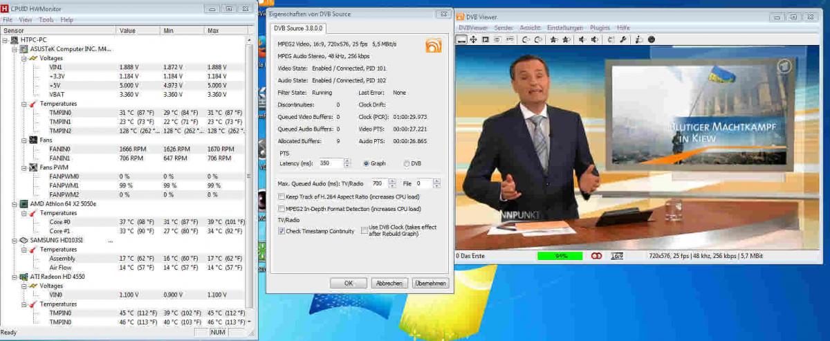 bvollmar Posted February 13, 2014 Author Posted February 13, 2014 Ich habe gestern einiges probiert: Neueste Grafiktreiber installiert. Die Karte auf einen anderen Steckplatz gebracht. Treiber nochmals aktuallisiert. Alle vorhandenen Codecs (PowerDVD 8, LAV, MS-DTV, Power DVD Network) mit unterschiedlichen Rederern durchprobiert. Fazit: Es ist keine Besserung zu erkennen. Im Gegenteil: Ich habe den Eindruck, daß je länger die Karte bzw der Computer in Betrieb ist, desto schlechter funktioniert alles. LAV ist etwas flüssiger aber stärker verpixelt, PowerDVD ist klarer, hat aber mehr ruckler, bzw Standbilder. Teilweise habe ich auch nur eine grünes Bild oder ein Standbild, Umschaltzeiten dauern teilweise sehr lange. Im DBD-Source habe ich bei ruckelndem Bild ca 3,1 bis zu 4,5 Mb/s, bei Standbild nur 1,5 Mb/s. Hardwarebeschleunigung ist aktiviert. HD 4550 AMD 5050e 2.6 Ghz dual core Quote