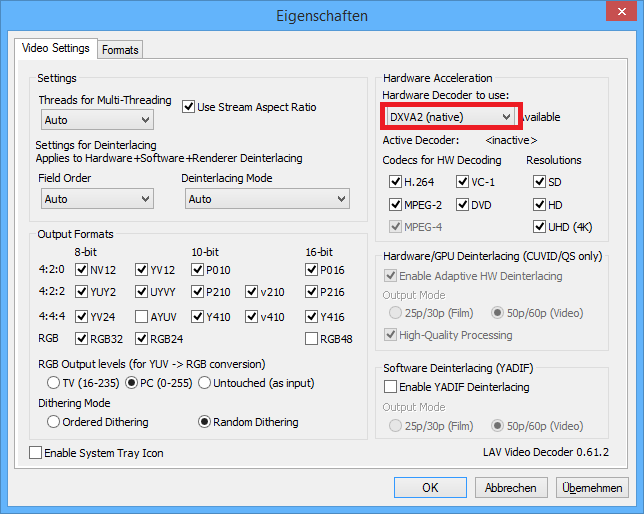 winfried Posted July 15, 2014 Author Posted July 15, 2014 LAV Video auf DXVA2 geändert -> keine Verbesserung MS-Codec verändert ebenfalls nichts. Mediacenter ist installiert Dennoch vielen Dank für die schnelle Antwort Quote