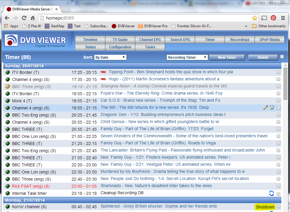 Lakeuk Posted July 20, 2014 Posted July 20, 2014 I use a shutdown task on the last programme of the night on my recording service, when the shutdown is enacted you'll get a user prompt like what you're seeing with a 30sec countdown, once it gets to zero then my PC shuts down. I'd recommend using the Recording Service rather than the DVBViewer client for managing you're recording Quote