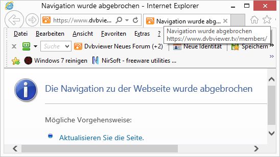 Conqueror Posted August 4, 2014 Posted August 4, 2014 Hi, Ich habe ein Problem mit dem IE11, wenn ich die Software Wondershare Video Converter Ultimate installiere und hier im IE 11 unter den Erweiterungen das Browser Plug In vom Wondershare Video Converter Ultimate aktiviere. Dann kann ich mich nicht die Seite https://www.DVBViewer.tv/members/ nicht öffnen. Statt dessen kommt diese Meldung, die im Anhang zu sehen ist.: [Zwischenablage] Deaktiviere ich das Browserhilfsobjekt, kann ich mich in die Seite ohne Probleme einloggen. Mit jedem anderen Browser tritt dieser Fehler nicht auf, nur mit dem IE11. Vielen Dank im voraus. support.zip Quote