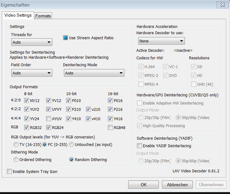arminhh Posted August 14, 2014 Author Posted August 14, 2014 Falls Du mit wie sieht der Vildeofilter aus die Eistellungen vom Codec meinst siehe Anhang! Danke für die Hilfe!! mfg Armin Quote