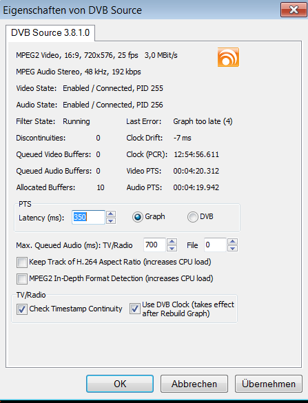 arminhh Posted August 14, 2014 Posted August 14, 2014 (edited) Guten Tag, seit ca. 2 Wochen habe ich DVBViewer pro. und den Recordservice in Betrieb. Als HArdware Tuner verwende ich Schwaiger MS41IP (DVB>IP). Leider Bekomme ich kein Bild mehr angezeigt im DVBViewer (Ton ist da).Der Recorderservice funktioniert tadellos lokal und im Netz. Lokal zeigt er mir auch ein Bild an. Leider nur im DVBViewer nicht. Ich denke ich habe alle erdenklichen Einstellungsmöglichkeiten ausprobiert. Incl. Nvidia Patch. Leider immer nur Schwarzes Bild.. Nur Bild in Bild zeigt ein Bild an. Anbei die Support.zip DVB Source. HArdware +Medion 21Zoll Touchscreen Win7 SP1 Grafikkarte Nvidia Geforce 9100M G LAV Codec installiert. Getestet Win7 neu installiert DVBViewer neu installiert Dieverse Codeceinstellungen Im Forum gelesen Meine letzte Hoffnung ist jetzt noch ein Tip aus dem Forum! ;-) Ich danke schon mal im Voraus!! Falls Infos fehlen bitte bescheid sagen! mfg Arminhh support.zip Edited August 14, 2014 by arminhh Quote