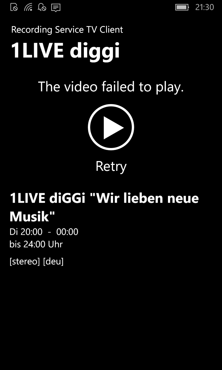 MaxB Posted October 6, 2015 Posted October 6, 2015 Im laufe des Abends müsste ein neues Update erscheinen. Es sollte nun möglich sein, dass auch Radio-Sender abgespielt werden. (Wenn ein entsprechendes Profil in den Einstellungen ausgewählt wurde) Zunächst vielen Dank für die Integration von Radiosendern Trotzdem sind mir beim Testen der App [hier auf Lumia 920 mit Windows Phone 10 Beta (Version 10.0.10536.1004)] ein paar unschöne Dinge aufgefallen: - Leider funktionieren die Radiosender nicht immer. Den Sender "1Live diggi" habe ich mit der App zum Beispiel noch nie zum Laufen bekommen, andere Sender sind Glücksache. Ist mein Profil evtl. nicht kompatibel mit der App? Muss ich da noch etwas anpassen? Mit VLC klappt das immer... - Ein weiterer Punkt ist, dass der Bildschirmschoner aktiv wird, wenn man Radio hört und dann ist der Ton leider auch weg... Hier noch ein Screenshot bei fehlgeschlagener Wiedergabe von "1LIVE diggi": Quote