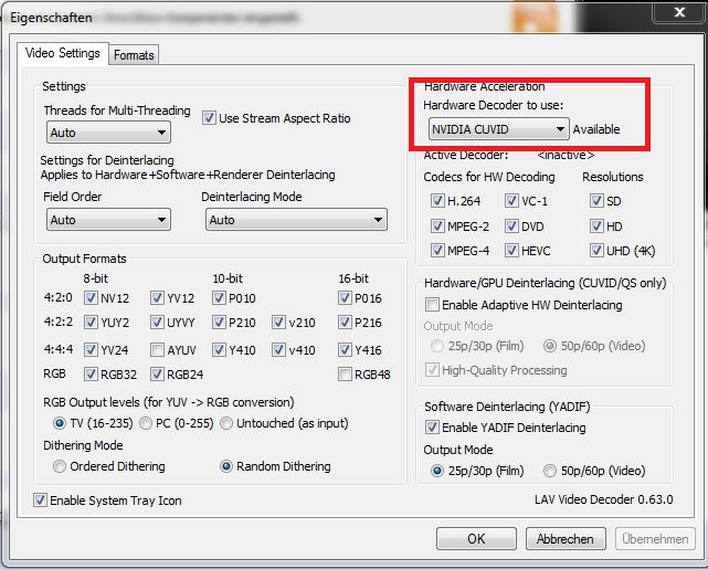 Joshua06 Posted November 28, 2014 Posted November 28, 2014 (edited) Hier wäre noch der Grafiklkartentreiber mal zu erneuern und im LAV Filter auf CUVID stellen (siehe Bild) Gruß Joshua Edited November 28, 2014 by Joshua06 Quote