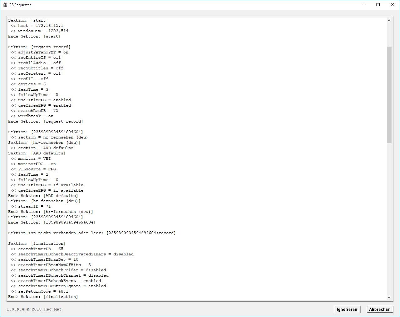 Beim TV-Browser lässt sich der Output des Requesters ganz leicht aus dem Aufnahmesteuerungs-Plugin abgreifen. Aber bequemer wäre es natürlich, wenn man sich diesen Umweg sparen könnte. Du verwendest vermutlich noch den Clickfinder. Ich glaube bei dem gibt es keine vergleichbare Möglichkeit.