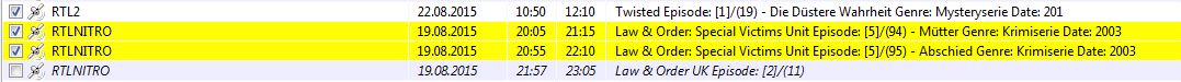 HacMat Posted August 19, 2015 Author Posted August 19, 2015 Die ID zuordnung passt auch soweit, wenn man aus dem Sender-Editor die ID mit Strg+C rauskopiert bekommt man ja so etwas 2359890883042094819|RTL Television Aber mit dem kommt Sender nicht gefunden. Wenn nur die ID oder der Sendernahme da steht funktioniert es. Ist das so gewollt? Nach meinem Verständnis handelt es sich bei der ID nur um die 19-stellige Zahl vor dem Trennstrich. Der Sendername dient nur als ergänzende Information, ist also eine Art Kommentar. Auch ohne die zusätzliche Angabe des Sendernamens ist die ID eindeutig. In der Senderliste, abgerufen mit 'http://<Host>:<Port>/api/getchannelsxml.html' steht unter dem Channel-Attribut 'ID' auch nur die 19-stellige Zahl. Der Zusatz '|RTL Television' in Deinem Beispiel, wäre also ohne Funktion. Aber vielleicht sollte ich die Verwendung einer um den Sendernamen erweitertenen ID mit der nächsten Version trotzdem zu lassen, damit man den Namenszusatz nicht immer entfernen muss, falls man die ID mit Strg+C aus dem Sender-Editor kopiert hat. Das zweite Thema ist die Namensvergabe/Timer Titel vergabe, da muss ich noch ein wenig Testen, das tut noch nicht so wie ich es gerne hätte. Der RS Requester erzeugt die Timer über einen Request des Web-Interfaces. Das Web-Interface gibt Dir leider nicht die Möglichkeit den Titel frei zu wählen. Der Sendungstitel bleibt immer der EPG-Titel. Dieser wird auch bei der Konstruktion des Dateinames verwendet. Wenn Du im Web-Interface den Namen des Timers änderst, hat das leider absolut keinen Einfluss auf den Titel-Abschnitt des Dateinamens. Um den Sendungstitel im Dateinamen ändern zu können, müsste ich den Timer über die API erzeugen. Leider musste ich aber auf die Nutzung der API verzichten, weil aufgrund eines Bugs PDC (VPS) nicht richtig funktionieren wollte. Näheres dazu findest Du hier: http://www.DVBViewer.tv/forum/topic/54402-keine-aufnahme-bei-nutzung-der-api-und-uberwachung-des-eit/ Mein damaliges Posting bezog sich auf die Version 1.28.0.0. Es kann deshalb sein, dass der Fehler in der API mittlerweile behoben wurde. Vielleicht habe ich auch nur etwas falsch gemacht. Ich werde mich mit der API nochmals beschäftigen, vielleicht finde ich ja jetzt eine Lösung für das Problem. VG, HacMat Quote