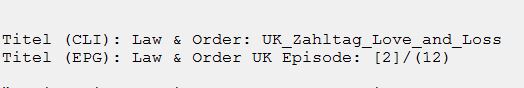 shaupti Posted August 19, 2015 Posted August 19, 2015 So mal ein Beispiel, Der String ist, den den du mal gegeben hast... -request record -readfile C:\\Program Files (x86)\\RS Requester\\Requester.cfg -title "{maxlength(concat(title,cleanLess(testparam(episode," - ",testparam(original_title," - "))),cleanLess(testparam(episode,testparam(episode_number,concat(leadingZero(episode_number,"3")," - ",episode),episode),original_title)),cleanLess(testparam(original_episode," - ")),cleanLess(original_episode)),"75")}" -channel "{channel_name_external}" -date {start_day}.{start_month}.{start_year} -start {start_hour}:{start_minute} -stop {end_hour}:{end_minute} -endaction none im EPG sieht es so aus Der Timer sieht so aus Die aufnahme sieht so aus wie es im EPG aussieht. Vielleicht versteh ich das immer noch nicht ganz mit der Namensgebung. Das zufügen von Inaktiven Timern ermöglicht es mir auf dem TV_Server die ganze Geschichte zu testen ohne, das die schon vorhandenen Timer etc. in Mitleidenschaft gezogen werden. Anbei auch noch die Config, vielleicht passt da was nicht. Es kann ja natürlich auch sein, das der REC-Service nur den vordersten Teil als Titel nimmt und das dahinter als "was weis ich was" zählt. Gruß Requester - Kopie.txt Quote