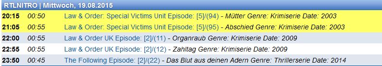 HacMat Posted August 7, 2015 Author Posted August 7, 2015 2. Also setzte ich einfach in meinem Fall einen String, da ich alles gleich aufnehme, vertraue dem anderem nicht. PDC funktioniert bei den meisten Sendern nahezu perfekt. Es gibt Ausnahmen wie z.B. Phoenix. Bei Phoenix scheinen sie der Meinung zu sein, dass der Phoenix-Seher unbedingt auch immer die Programmvorschauen mit aufzeichnen möchten. Bei ZDF neo kam es bei mir häufiger vor, dass PDC vollkommen fehlschlug. Wenn Du PDC für zu unzuverlässig hältst gibt es noch die Möglichkeit automatisch auch immer einen Timer ohne PDC zu erzeugen. Die Sendung wird dann zweimal aufgenommen, einmal mit fester Start- und Endzeit und einmal durch PDC gesteuert. Hat die Aufnahme mit PDC funktioniert, löschst Du die 'Sicherheits-Aufnahme' einfach wieder. Auf PDC ganz verzichten würde ich nicht. Für ZDF_neo könntest Du das z.B. so bewerkstelligen: [zdf_neo HD (deu):record] execOnSuccess = C:\Program Files (x86)\RS Requester\rsreq.exe -request record -verbose -folder D:\Aufnahmen ohne PDC -host {host} -port {port} -https {https} -title {title} -channel {channel} -date {date} -start {start} -stop {stop} -monitor nothing -monitorPDC disabled -preroll 5 -postroll 10 -window disabled -autoExit if successful [zdf_neo HD (deu):delete] execOnSuccess = C:\Program Files (x86)\RS Requester\rsreq.exe -request delete -folder D:\Aufnahmen ohne PDC -host {host} -port {port} -https {https} -title {title} -channel {channel} -date {date} -start {start} -preroll 5 -postroll 10 -window disabled -autoExit if successful 3. Die Aufnahmeverzeichnisse sind eher auf die Suchen gesetzt, also Serie 1 in Ordner 1 usw. Ich könnte eine Funktion implementieren, bei denen der RS Requester den Timern das Aufnahmeverzeichnis zuordnet, bei dem die größte Ähnlichkeit zwischen Verzeichnisname und Titel der Sendung besteht. Beispiel: Aufnahmeverzeichnis: d:\TV-Aufnahmen Unterverzeichnisse: d:\TV-Aufnahmen\Serie A d:\TV-Aufnahmen\Serie B d:\TV-Aufnahmen\Serie C Titel der Sendung: Serie B Season 1 Episode 34 Größte Ähnlichkeit besteht zwischen „Serie B Season 1 Episode 34“ und „Serie B“ => Der RS Requester übergibt d:\TV-Aufnahmen\Serie B als Aufnahmeverzeichnis an den Recording Service. Wäre eine solche Funktion für Dich praktikabel ? 4. und 5. Ist sogesehen ja doch ein Punkt, geht ja darum, das die Timer gesetzt werden und RecService dann sagt z.b. Aufnahme freier Sender Tuner 1-4 und Verschlüsselte Sender Tuner 5 - 12. Damit die Zuordnung der Sendergruppen dann noch passt. Vielleicht verstehe ich nicht richtig was Du meinst. Wenn Du mir die mit 'http://.../api/getchannelsxml.html' im Browser angezeigte Senderliste zukommen ließest, verstünde ich vielleicht mehr. 6. Ok, dann hab ich das ein wenig falsch Verstanden. Hab gedacht durch den TV-Browser könnte man den Titel so wie man ihn will übergeben und im Rec-Service in den Optionen nur den Titel auswählen ohne Zusätze. Da ich das so gerne hätte: Bei Serien --- Bitten_S01-E07_Jäger und Gejagte_SIXX --- bei Filmen --- Faster_Genre Actionthriller Date 2010 - 2015-08-02 - 22-55-00_ProSieben --- oder so in der Art. Du hast das schon ganz richtig verstanden. So wie Du sagst sollte es auch funktionieren. Das Problem ist nur das der RS den übergebenen Titel nur als Name für den Timer betrachtet nicht aber als Sendungstitel, den er zur Bildung des Dateinamens verwendet. Ich denke das ist ein Bug im RS. Den Namen des Timers im Web-Interface ändern zu können, ohne dass dieser als Titel im Dateinamen verwendet wird, macht für mich keinen Sinn. 7. Kommt noch ein Punkt dazu, und zwar, kann ich in der config sagen, setze alle Timer egal ob eine überschneidung etc vorhanden ist. Da ich momentan auch jedesmal über die Aufnahmen drüber schaue, bzw schauen muss, da das automatische auslassen etc nicht funktiioniert. Also würde ich das so beibehalten, das alle Timer für eine Woche gesetzt werden und ich drüber schaue was ich dann behalten will. Der RS Requester wird in der nächsten Version alle Requests an den RS weiter leiten, wenn Du 'devices' den Wert 0 zuweist. Quote