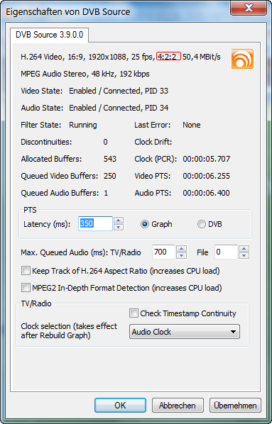 Griga Posted February 16, 2015 Posted February 16, 2015 Im Preview-Fenster die Heder-Info noch mit unterzubringen wäre unmöglich? Sowas ähnliches gibt es dort bereits. Du brauchst nur die Taste D drücken, um die Eigenschaftsseite des DVBViewer Filters mit Formatinformationen aufzurufen (oder wahlweise Rechtsklick -> Filter -> DVBSource). Nur fehlt dort die Angabe des Chroma-Formats. Nützt dir also nichts. Wenn, dann würde ich es dort ergänzen. Ob das ohne weiteres möglich ist, müsste ich erst untersuchen. Quote