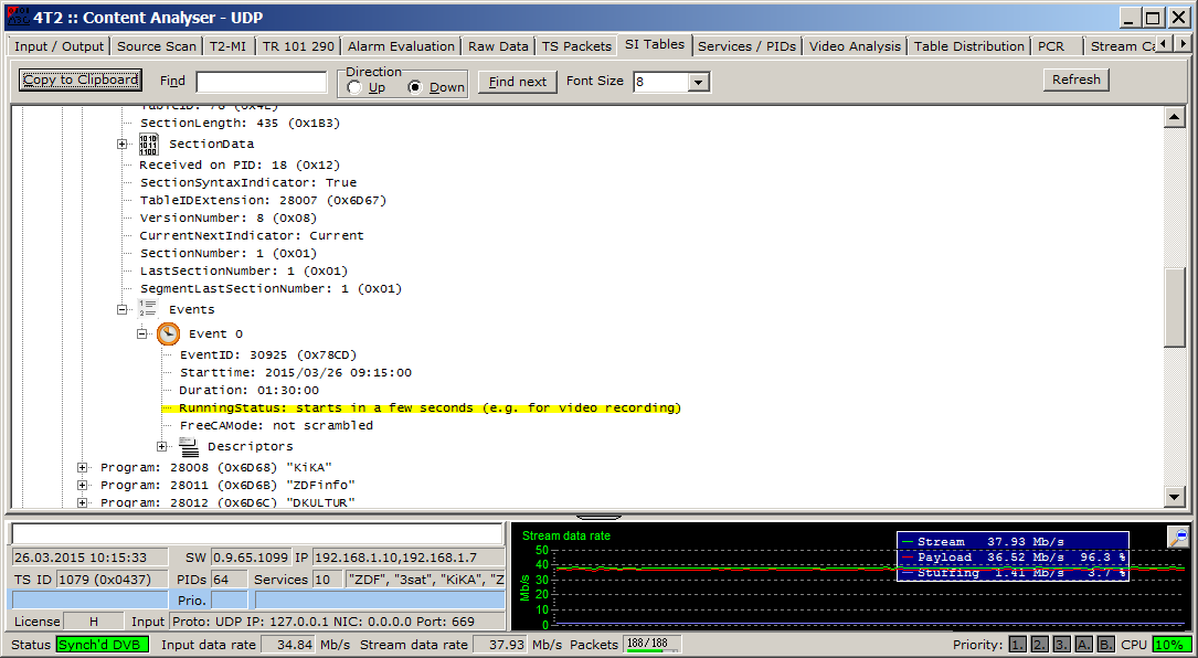 Verzögerung bei VBI /EIT Running Status Aufnahme