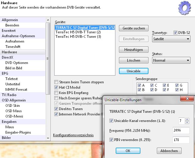 17110 Posted May 14, 2015 Posted May 14, 2015 hallo und einen schönen feiertag alle zusammen! ich hab mir eine terratec s7 (rev.4) gekauft und muss diese jetzt bei uns im haus am unicable system anmelden. kanal und frequenz ist klar wie ich das eintrage, nur bei der pin weis ich gerade nicht weiter. die pin die ich im reciever zum anmelden eintragen muss, lautet 0000. wie trage ich die im DVBViewer ein, da geht nur 0..255? oder hab ich da jetzt irgendwo ein denkfehler? danke und mit freundlichen grüßen Quote