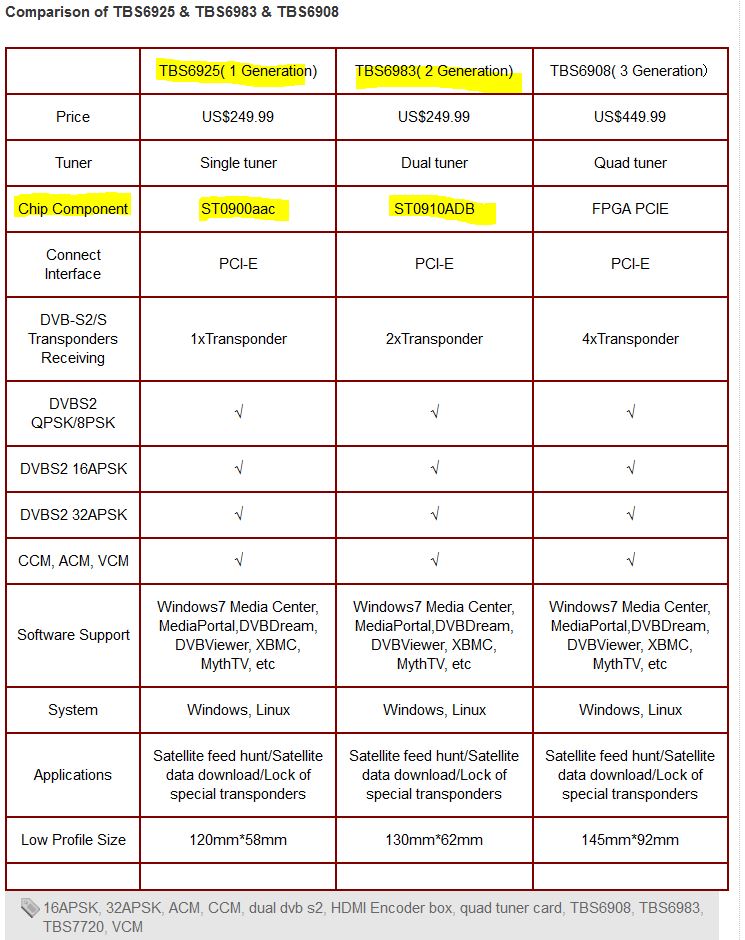 Griga Posted July 10, 2015 Posted July 10, 2015 @Griga, bei mir steht bei der TBS5925 vendor 13. Die 6983 hat aber hier vendor 0 In der Hardware-Datenbank ist die drin, aber noch nicht in TransEdit 3.9.6, da wir die Information von TBS erst im Januar erhalten haben. Solange kein DiSEqC > 1.0, Unicable oder CI gebraucht wird, sollte das nichts ausmachen. Quote