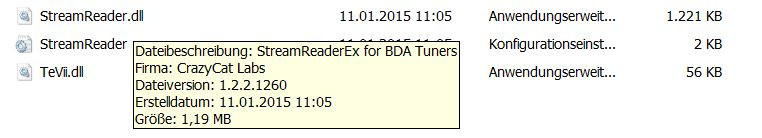 assemblersat Posted October 13, 2015 Author Posted October 13, 2015 Es wird die Standard-BDA-Schnittstelle verwendet, so wie bei allen DVB-S-Geräten mit BDA Treiber. TransEdit benutzt das TBS API nur für DiSEqC. Mit der Streamreader.dll haben DVBViewer & Co überhaupt nichts zu tun. Wenn die Karte nicht BDA-kompatibel ist, sehe ich für sie keine nennenswerten Marktchancen. Ist sie im Windows Media Center verwendbar? Das war zumindest vor Windows 10 für alle Hersteller der Bezugspunkt. Hallo Griga, ja, ich weiss das DVBViewer und Transedit nichts mit "Streamreader.dll" zu tun haben ,aber ich dachte das eine Anpassung der Standard-BDA-Schnittstelle vielleicht zumErfolg führen könnte... Quote
