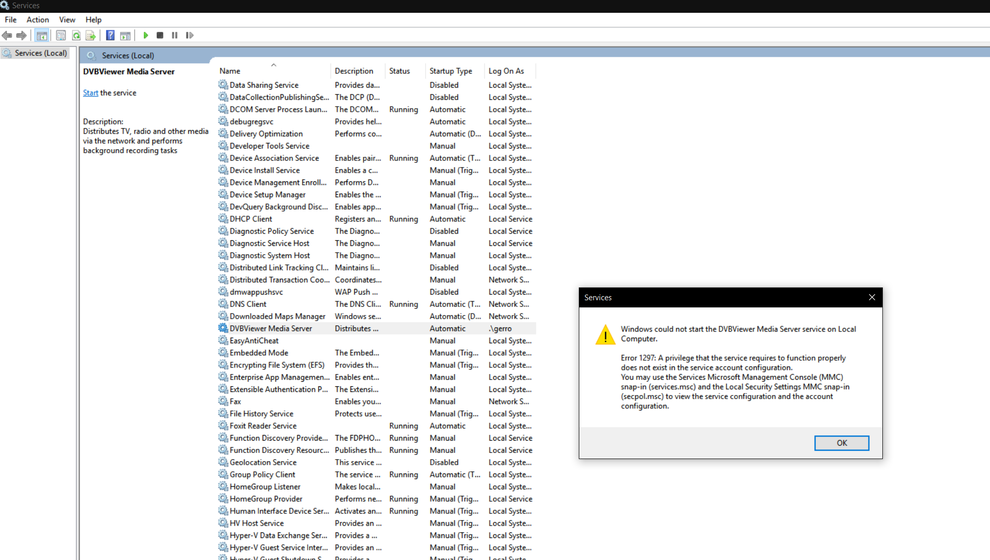 Tony Posted August 25, 2015 Author Posted August 25, 2015 I tried this procedure (setting the service in services.msc) today. DVBViewer Recording Service won't start even under a standard account or administrator account (Windows 10)… Quote