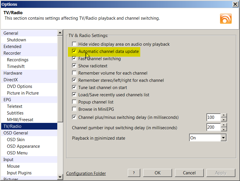 chart-man Posted September 28, 2015 Author Posted September 28, 2015 Hallo,nachdem sich im Recording Service-Bereich keiner auf diese Anfrage gemeldet hat, versuche ich es mal hier:Seit Anfang September werden vom DVBViewer Pro (Version 5.5.1, bzw. seit heute 5.5.2) keine EPG-Daten mehr geladen.Im Recording Service (Version 1.31.0.0) werden ebenfalls keine EPG-Daten mehr angezeigt. Auch eine manuelle EPG-Aktualisierung im Recording Service bringt keine Abhilfe.Der Empfang und die Aufzeichnung per von Hand programmiertem Timer funktioniert ansonsten einwandfrei.Wo könnte der Fehler liegen?Ich verwende für Empfang/Aufnahme einen PC auf dem noch Windows XP läuft mit einer DigitalDevices Cine C2/T2 (Treiberversion 2.6.1.118).Der Empfang läuft über Kabel von Unitymedia Hessen. Und bis Ende August lief auch der EPG-Empfang ohne Probleme. support.zip