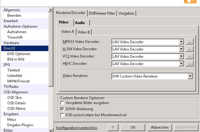 koekjuli Posted September 27, 2015 Posted September 27, 2015 (edited) Hallo research! Es ist wichtig, dass du deinen Bildschirm auf 50Hz stellst, da die Frequenz mit der deutschen Fernsehbildübertragung stimmig ist. Ansonsten versuche mal Folgendes: - Windows Aero aktiviert? Wenn nicht, dann mal bei der Anpassung das Standard Windows 7 -Design einstellen. - beim Video-Renderer im DVBViewer den VMR9-Renderer einstellen. Die Intel-Grafik macht mit dem EVR-Renderer leider Probleme. Zumindest war das mit meinem alten Rechner noch so. - den windowseigenen Decoder einstellen! Da du Windows 7 hast, kannst du sowohl bei MPEG2, als auch bei H.264 den Microsoft DTV-Decoder einstellen. Auch bei Audio den Microsoft-Decoder einstellen. Einfach alles der Reihe nach durcharbeiten, wobei ich denke dass der Video-Renderer bei dir das Problem macht. Liebe Grüße Julian Edited September 27, 2015 by koekjuli Quote