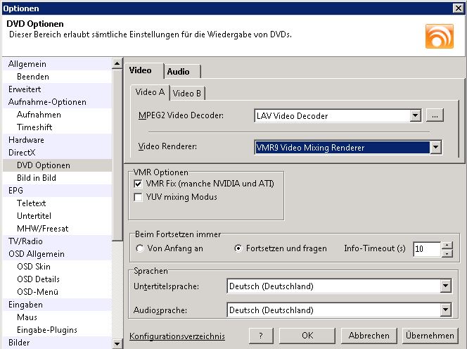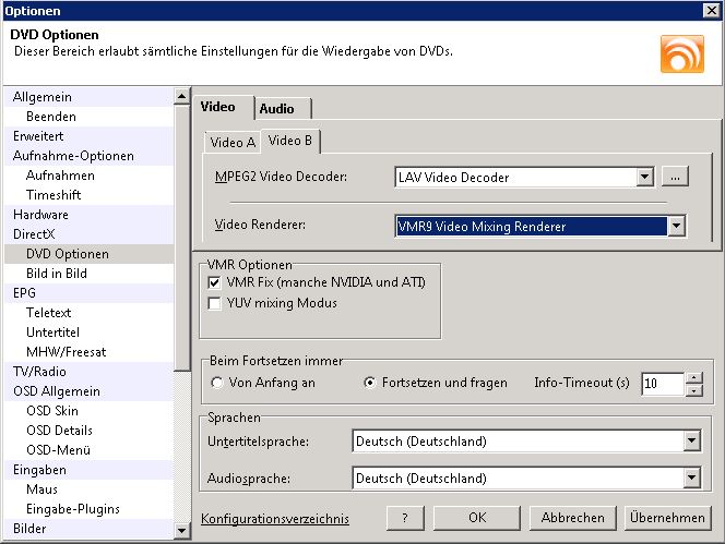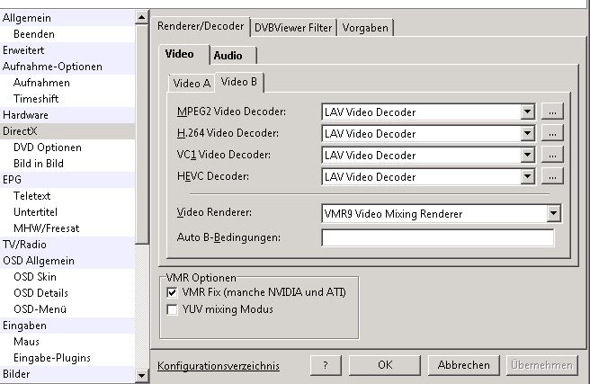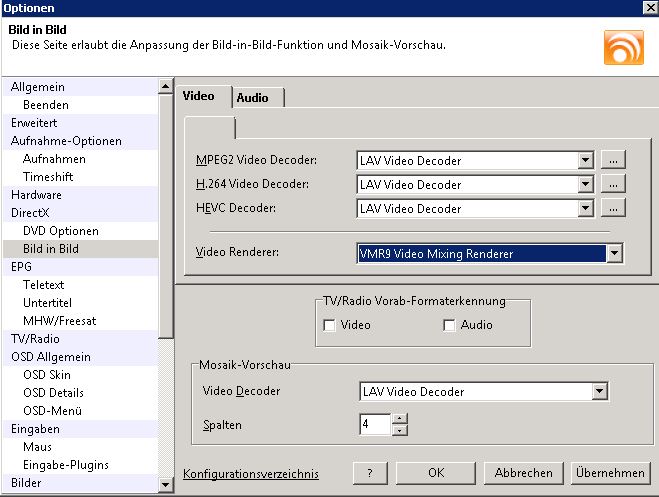 LeimerJ Posted September 28, 2015 Posted September 28, 2015 (edited) Die Intel-Grafik (4400) macht bei mir mit dem EVR-Renderer keine Probleme. Win 7,aero einschalten ist wichtig,viewervers,5.3.1(incl scheduler) Microsoft DTV-Decoder auch Cyberlink codec funktioniert bestens. Bei Steuerung Intel HD Grafik: Video Standardfarbkorrektur:Hackerl bei Anwendungseinstellungen also nicht über den Treiber,somit kann man im Viewer die Farbeinstellungen machen. Edited September 28, 2015 by LeimerJ Quote
