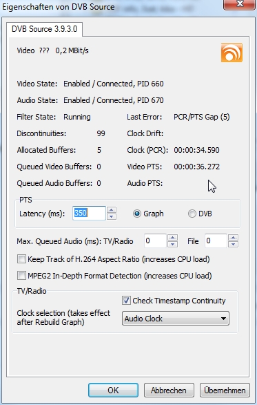 blasgl Posted October 15, 2015 Posted October 15, 2015 Ich sehe im zip nichts komisches. Kannst Du vielleicht ein "Foto" vom DVB Source Filter machen in dem Moment wo die Probleme auftreten? Quote