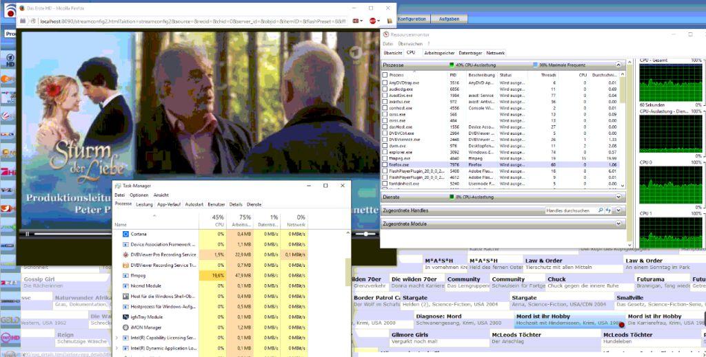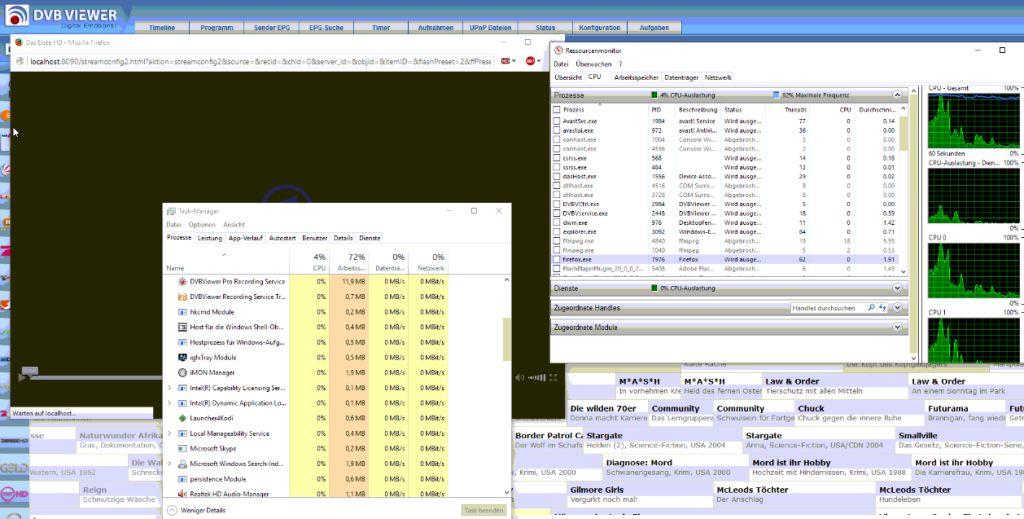 Junias Posted December 9, 2015 Author Posted December 9, 2015 so, problem mit wol wieder gelöst, nach dem treshold update hat microsoft automatisch wieder den schnellstart angeschaltet, mit welchem kein wol möglich ist :/ ganz tolle leistung microsoft... Zum anderen Problem: Ich hab mal zwei Bilder angehängt und folgendes gemacht:- Recording Service gestartet - Sender über Flash angemacht (Middle/1200kbits), etwas laufen gelassen (ca. 30sec) und screenshot gemacht - Flash Sender ausgemacht - gleichen Sender mit gleichen Einstellungen als WebM gestartet, 30sec laufen lassen und screenshot gemacht Habe beide Screenshots angehängt, sehr auffällig ist, dass bei Flash der Prozess FFmpeg aktiv ist und ca. 20% CPU-Last braucht. Bei WebM ist der Prozess allerdings gar nicht mehr vorhanden, WebM startet den Prozess FFmpeg erst gar nicht... (Im Ressourcenmonitor steht bei FFmpeg "abgebrochen", weil ich ja vorher die Flash Wiedergabe beendet hatte, wobei der FFmpeg-Prozess abgebrochen wird) Spiele ich einfach nur WebM ab ohne einen vorherigen Flash-Stream, so erscheint der Prozess FFmpeg weder im Task Manager noch im Ressourcen-Monitor... Also ist das Problem ganz klar FFmpeg... Kann irgendwer mir dazu weitere Tipps geben??