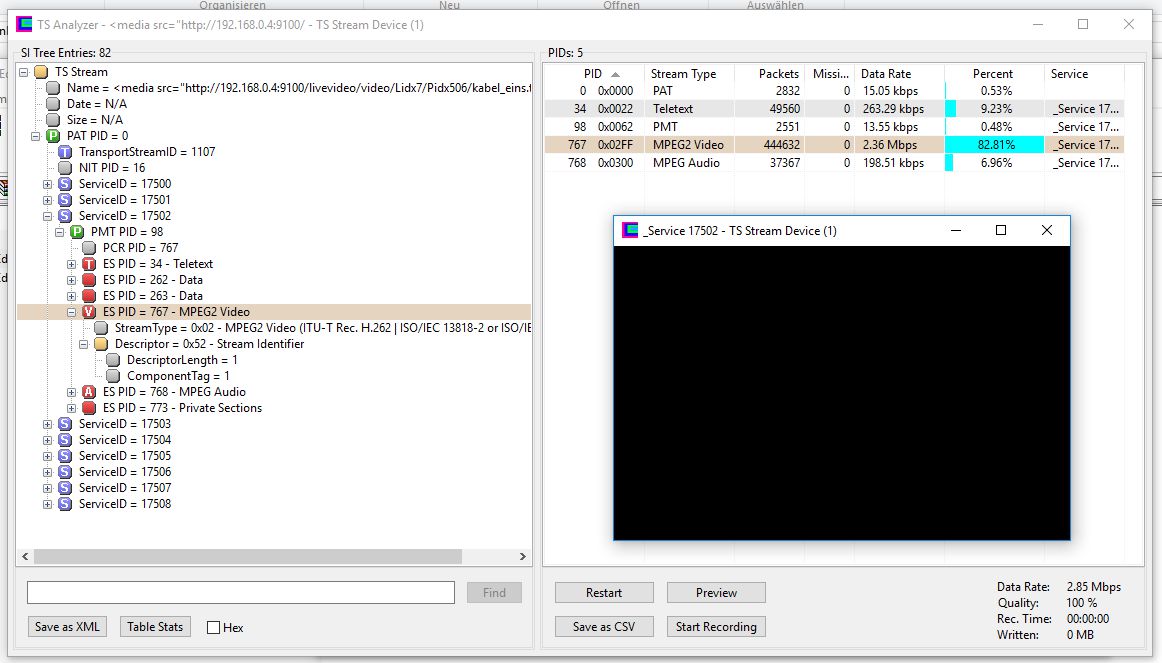 Griga Posted December 6, 2015 Posted December 6, 2015 Den Stream würde ich mir gerne mal anschauen. Hast du die Möglichkeit, irgendwo eine kurze TransEdit-Aufnahme hochzuladen? Für einen Forumanhang wird sie wahrscheinlich zu groß. Dazu den Analyzer laufen lassen, bis alle Streams sichtbar sind, dann Rechtsklick in die Liste der Streams -> Select All, dann Button Start Recording -> etwa 5 bis 10 Sekunden laufen lassen -> Stop Recording. Ergibt eine TS-Datei. Wo der Analyzer Dateien hinschreibt, siehst du unter Settings -> Analyzer. Quote