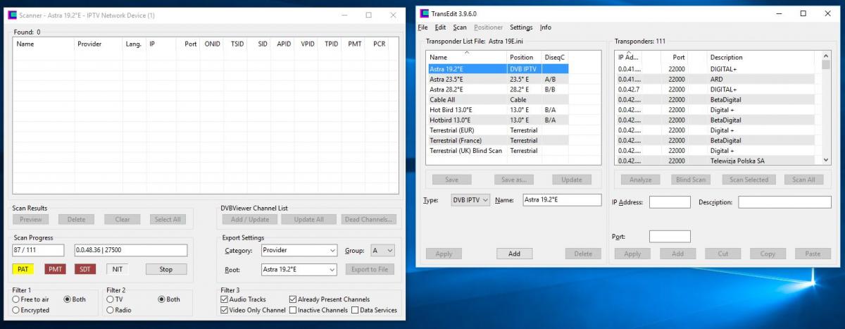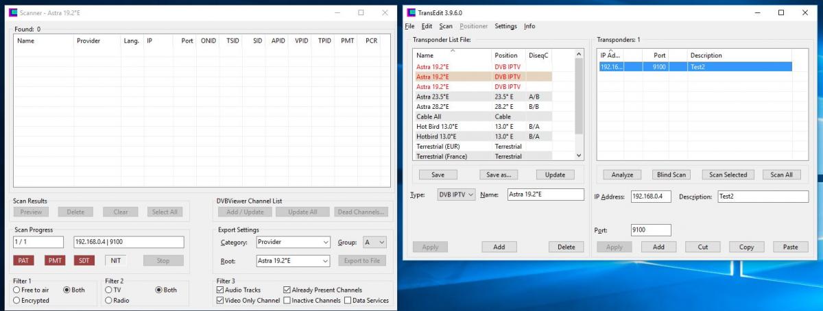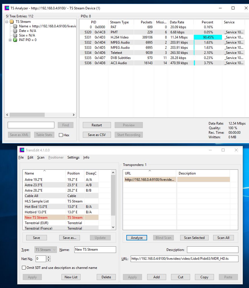Griga Posted December 1, 2015 Posted December 1, 2015 Du verwendest die nicht netzwerkfähige Version TransEdit 3.9.6 statt wie von Tjod empfohlen TransEdit 4.1 Beta (siehe Downloadbereich, Beta-Sektion). Außerdem versuchst du eine Satellitenposition zu scannen statt URLs. Da Minus mal Minus Plus ergibt, müsste es eigentlich gehen. Zumindest ähnlich gut wie UKW mit einem Staubsauger In TransEdit 4.1 erzeugst du erst eine TS Stream-Transponderliste (File -> New List -> TS Stream), in die du URLs von deinem TecniSat-Dingens einträgst. Und zwar in der URL-Eingabezeile auf der rechten Seite. Dann auf Add hauen und auf Analyze. Quote