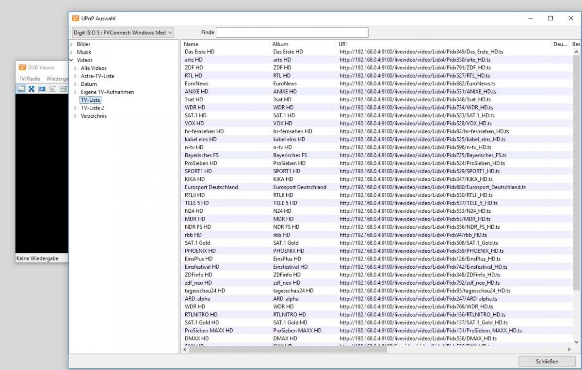 Tjod Posted December 1, 2015 Posted December 1, 2015 UPnP ist keine stärke vom DVBViewer. Aber die Angezeigten URLs sollten im DVBViewer Pro gehen wenn du die in eine Playliiste packst. Und im DVBViewer GE sollten die auch in der Senderliste gehen. (für den DVBViewer ist das zwar auch angedacht aber es ist nicht klar wann es kommt) http://www.DVBViewer.tv/forum/topic/56131-internet-tv-mit-dem-DVBViewer-ge-36/ Ein einfacher weg die alle einzutragen fällt mir Grade nicht ein. Außer du kannst die auch als playliste von dem Gerät herunterladen. Quote