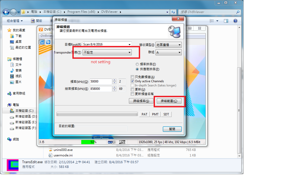 anime5167 Posted April 8, 2016 Posted April 8, 2016 (edited) English by Google Translation & myself edit. sorry for my poor englist. location: HongKong the new version so hard to use (is for Professional skill??) before just pass "scan range" botton and wait (If scan nothing, just pass again now i don't know how to scan range because i don't know the channel Mhz or bandwidth (default channel Mhz file no way to scan a active channel ) There are many different transmitting stations in Hong Kong and channel Mhz not the same Now only way is use the old version eg. TransEdit hard to use for newbies (i try few hour, still get nothing) Lifetime Update feel is fake...............(i can't use new version to scan any channel) It's possible older scan tool for new DVB version? Thank you. (image 5.4.1.0 beta) Edited April 8, 2016 by anime5167 1 Quote
