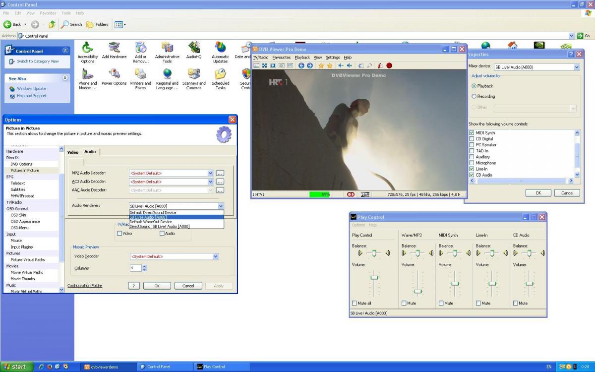 Gioxy Posted May 15, 2016 Posted May 15, 2016 (edited) I may have been unclear, but obviously a program can't be independent - in the way you state - from main/mp3 volume controls, unless it can directly control one of the two...To resume: DVBViewer add an it's own volume control that you can manage independently from the two main DirectX controls, and the final volume depends on the setting of all three controls...But all this doesn't mean it add a [unnecessary] DirectX component or [even] a decoder, it only use the Audio decoder codec you can choose in his setting: have you already tried to change it? This choice can lead to big differences...As reported in you support.zip for MPEG Audio Codec you have: MPEG Audio Decoder V6.5.2600.6333: 03680001NVIDIA Audio Decoder V4020.223.0.0: 00800001ArcSoft Audio Decoder HD V1.3.3.250 (beta): 00600000Hauppauge MPEG Layer-1/2 Audio Decoder V5.0.851.0: 004000 considered the actual filters merits, your <system default> audio decoder should be the NVIDIA one (the first seems "out of range")... Please try choosing them one by one, checking they are really used in "Settings / Filter"; moreover, if you click on their name in that window, you can access their settings, maybe you can also set something different there...(for all this please refer to Options DirectX wiki's page...) Edited May 15, 2016 by Gioxy Quote
