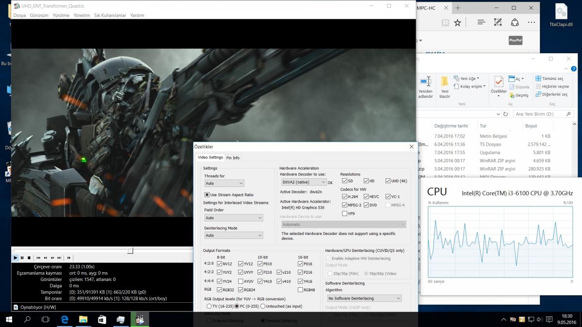TaKo Posted May 9, 2016 Author Posted May 9, 2016 I have Skylake CPU with İntel Graphics 530. And I play the same HEVC file with MPC-HC without any problem with LAV Filter. I also tried various kind of Renderers MadVR was one of them. MPC-HC does not crash anyway. Quote