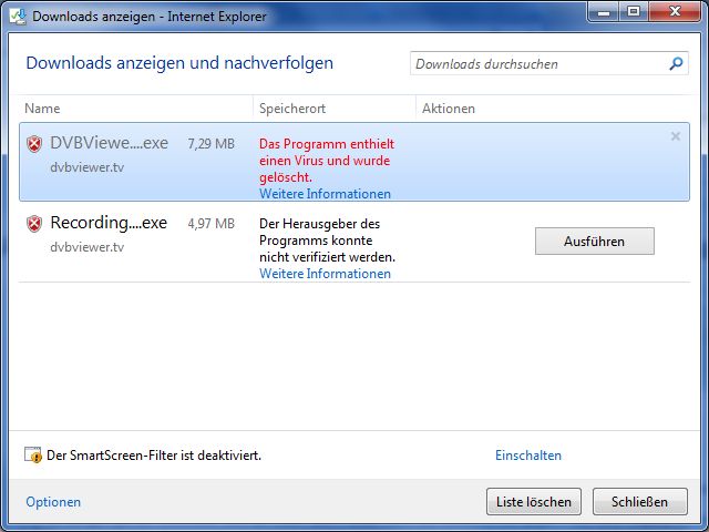 Griga Posted July 20, 2016 Posted July 20, 2016 OK, ich habe es noch mal probiert. Hier der verbesserte vollständige Ablauf: Echtzeitschutz des Defenders deaktivieren. Defender-Einstellungen schließen (?). DVBViewer-Setup downloaden Rechtsklick auf DVBViewer_setup.exe -> Eigenschaften -> Diese Datei stammt von einem anderen Computer blabla... Zulassen Setup ausführen DVBViewer.exe in die Ausnahmeliste aufnehmen, oder besser gleich den ganzen Ordner, in dem die Datei enthalten ist. Wenn man die DVBViewer_setup.exe behalten will, ebenfalls in die Ausnahmeliste aufnehmen oder in den ausgenommenen Ordner verschieben, damit sich der Defender nicht gleich wieder drauf stürzt Echtzeitschutz des Defenders reaktivieren. Quote