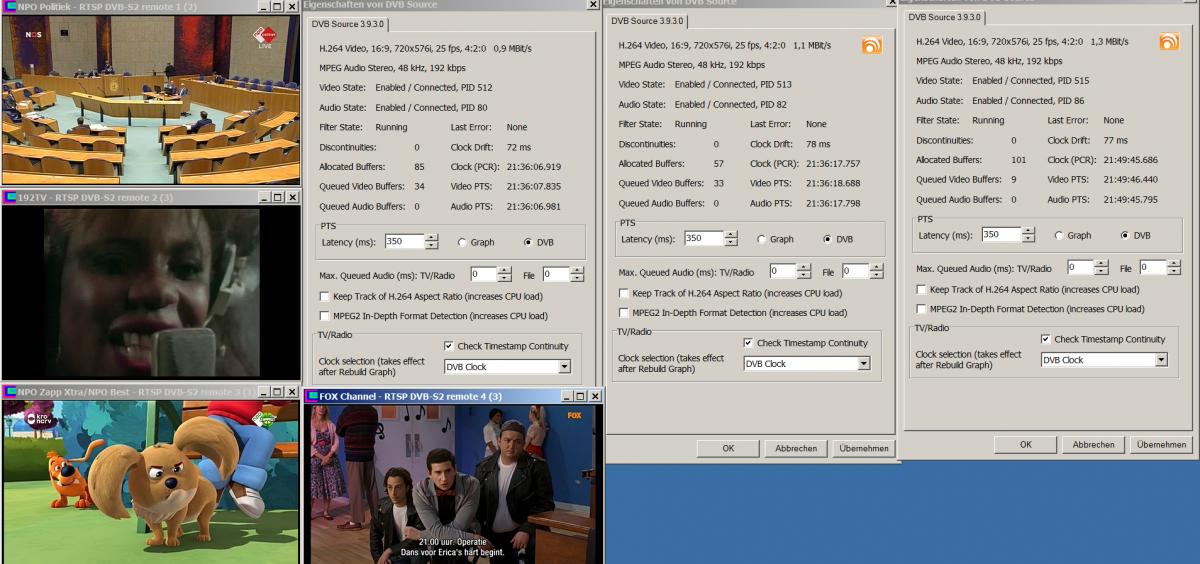 Derrick Posted October 27, 2016 Posted October 27, 2016 There could be a solution if you use a tweak Open the svchardware.xml and add this line to the physical device with CI-module: <entry name="MultiPID">1</entry> Define as many RTSP devices in transedit as you think your CAM can open different channels simultaneously. (RTSP1, RTSP2..) Then scan a corresponding transponder. Now you can preview more than 1 channel. The limit is the number of PIDs your CAM can handle With my Alphacrypt and a CanalDigitaal smartcard I can preview 4 programmes without discontinuities (didn't try 5 ) . Though there are only 2 streams/programme = 8 PIDs If you were referring to the analyzer: Descrambling/preview is limited to a single programme at a time. Though you could use more than 1 instance. Quote