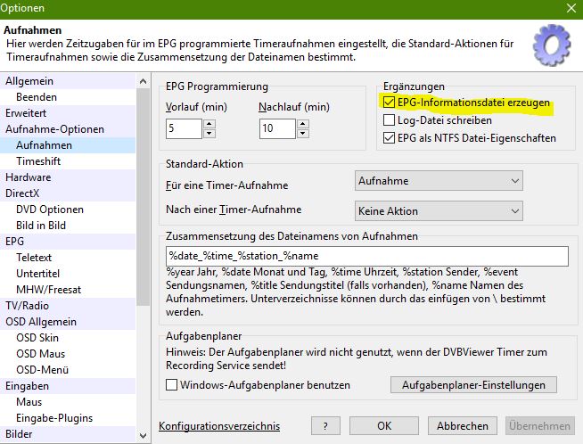 Joshua06 Posted December 7, 2016 Posted December 7, 2016 Hast du den Haken gesetzt (siehe Bild). Dieser bewirlt das zu jeder Aufnahme ein Textdatei mit EPG-Infos erzeugt wird, Quote