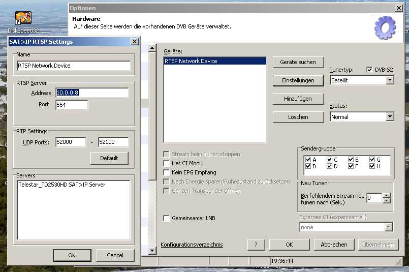 ´ch_m Posted March 6, 2017 Posted March 6, 2017 Hallo, ich habe meine SAT>IP Receiver TD Telestar 2530 HD via WLAN ins Netzwerk integriert. Die Signalstärke zwischen Server, Router und PC ist sehr gut. Der Router sieht den SAT>IP Server, DVBViewer auf meinem PC (WindowsXP), verbunden über WLAN, findet das Gerät und schlägt es bei der RTSP Konifiguration selbstsändig vor. Beim Sendersuchlauf (Astra 19,2°) werden aber keine Sender gefunden. Woran kann das liegen? Die diversen Firewalls habe ich testweise schon deaktiviert. Danke für die Hilfe im Vorhinein! Christian Quote
