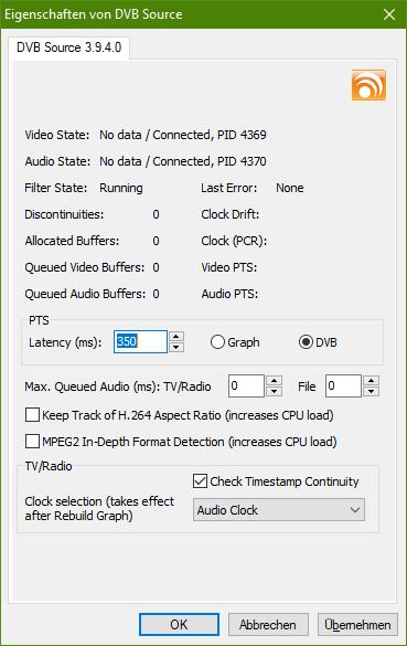 Griga Posted July 27, 2017 Posted July 27, 2017 Schaue mal zwecks weiterer Diagnose hier nach, wenn ein TV-Sender eingestellt ist: http://www.dvbviewer.com/griga/DVBSource D/DVBSource.html#PropertyPage Steht da sowas wie "no data"? Quote