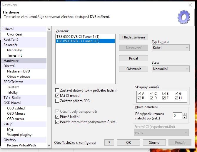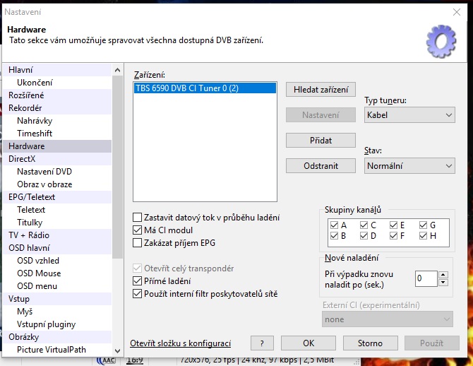 Patt1 Posted August 17, 2017 Posted August 17, 2017 (edited) Hi, can anyone find someone who knows how to help me? I have this TV card ... https://www.tbs-technology.de/shop/DVB-Multi-Standard-Dual-Tuner-PCIe-TV-Card-with-CI-TBS-6590 ... naively, I thought it would be a toy. Before I used the TechniSat CableStar HD 2 and it was not the biggest problem. But I changed the board and the old card somehow is not a port. So there was a choice for this. And, thank you, let's do what I do, I can not tune up one channel. I have a card on the cable from Digi Sk, the signal on the cable is more than good, the PC card is visible, and the card program is beautiful. The problem will begin when I want to run scanning channels. Scanning is 4 and a half hours and does not find one single channel. I use DVBViewer (original license), it was DVBViewer 5.5.2 version yesterday, today I have successfully downloaded the latest DVBViewer version 6.0.3.0 and here it is horsie. And I do not know what to do. I'm sure the problem is somewhere between the monitor and the table, but I do not even know where ... Will someone find someone who understands it? Edited August 17, 2017 by Patt1 Quote