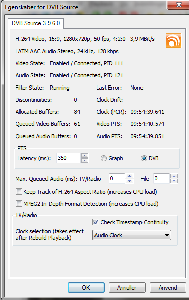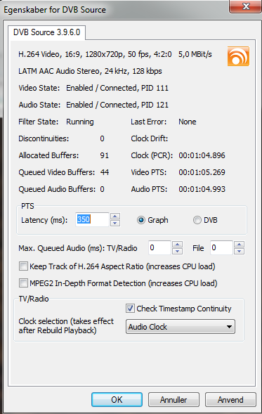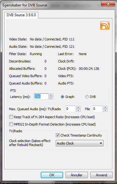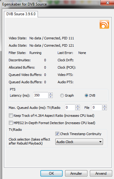 Griga Posted April 13, 2020 Posted April 13, 2020 On 4/12/2020 at 1:09 PM, Griga said: You can also check on the DVB Source property page after clicking the DVB radio button (!) if reference clock (PCR) data is coming in. It's always unencrypted. 2 hours ago, Griga said: What does the DVB Source property page show in PTS -> DVB display mode? Unfortunately you didn't follow my advice. The Graph PCR is always present, because it is generated in your PC. However, the interesting part in your case is the incoming DVB PCR. Quote