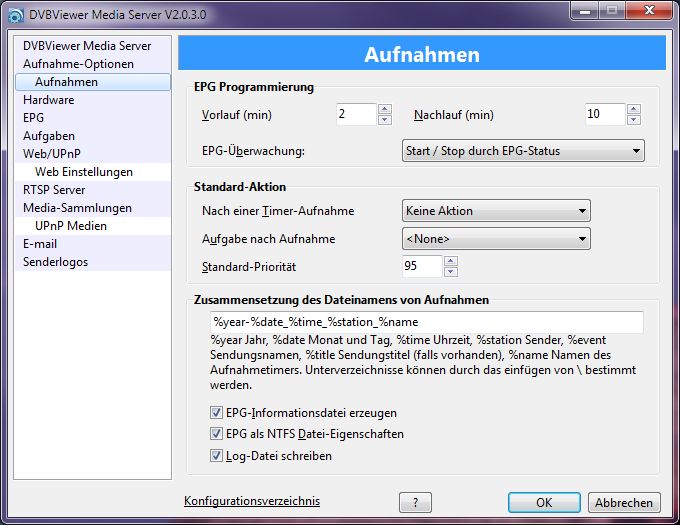 Tjod Posted August 18, 2017 Posted August 18, 2017 Poste mal ein support.zip bei mir gibt es kein Problem mit der Einstellung. Wie sieht es ais wenn du da andere Einstellungen änderst z.B. den Vorlauf auf 10 Min ändern (der sollte länger sein wenn du Start/Stop durch EPG nutzen willst. Da erst ab beginn des vorlaufs geguckt wird ob die Sendung startet) Quote