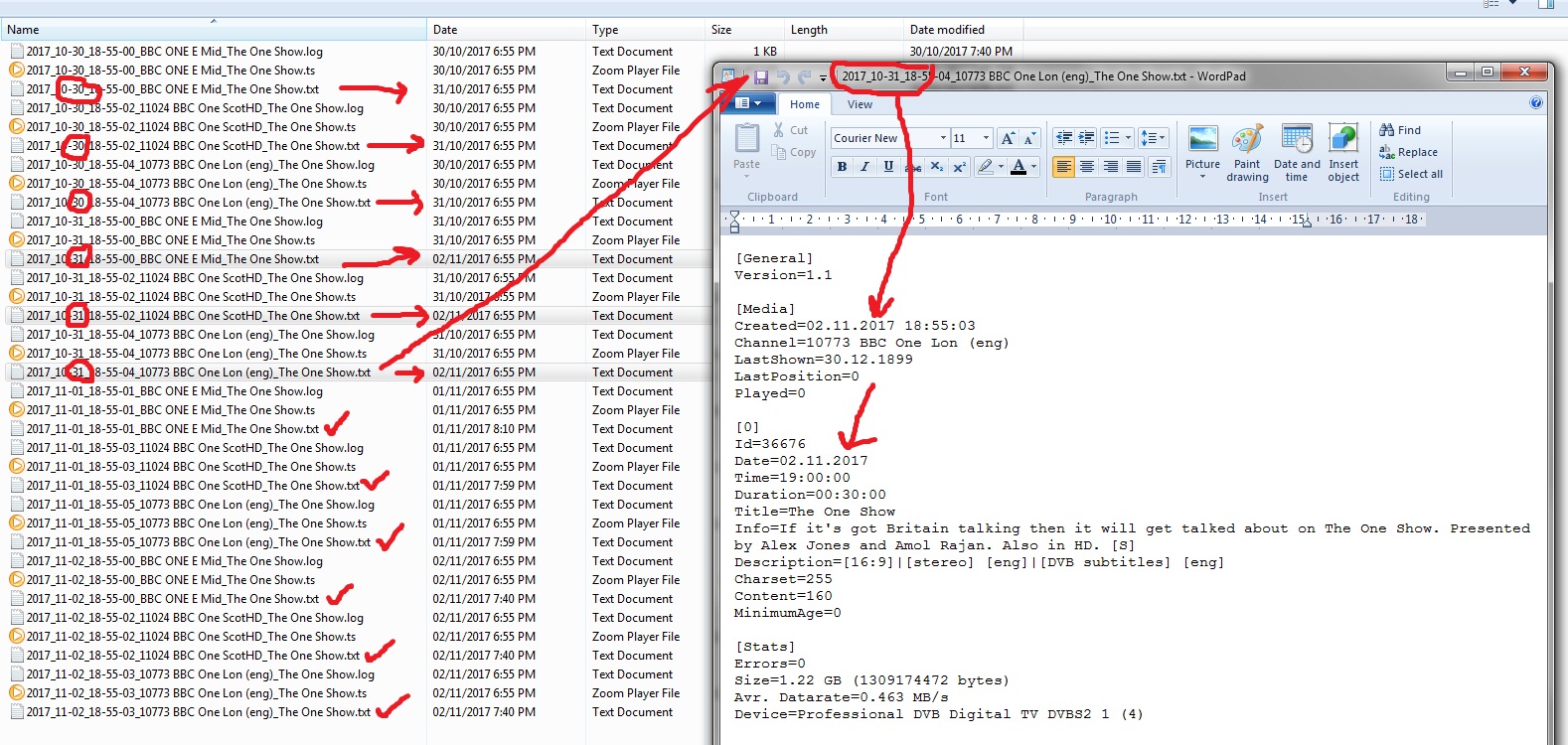 i.e. EPG txt files not matching the date and content of the recorded broadcasts to which the txt files are named. I might have all the info, they are just out of sync!>_<:)