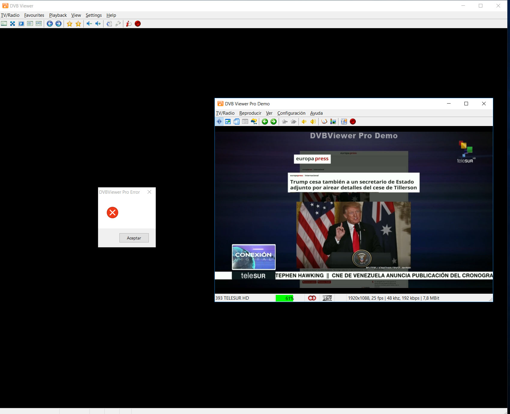 jarevuelto Posted March 14, 2018 Posted March 14, 2018 Hi, I just installed DVBViewer Pro and it does not work. DVBViewer Pro Demo worked perfectly. I have written to Support, but they refer me to the Forum. Thank you DVBViewer.log support.zip Quote